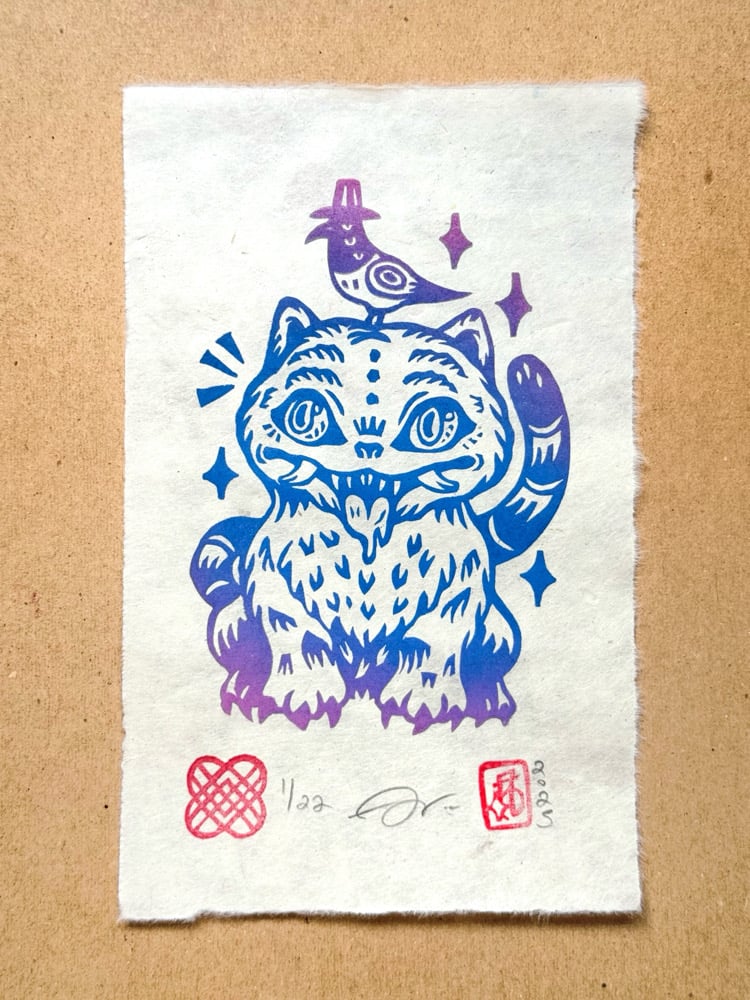 Handprinted with Handmixed Dark Periwinkle Ink on Japanese Paper